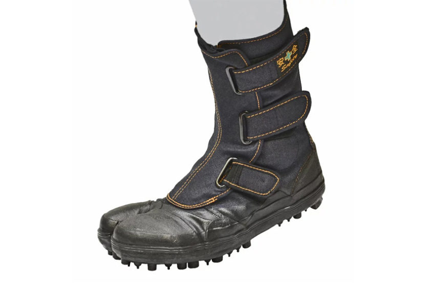 踏ん張り力を発揮する、地下足袋。金属スパイク装着です。