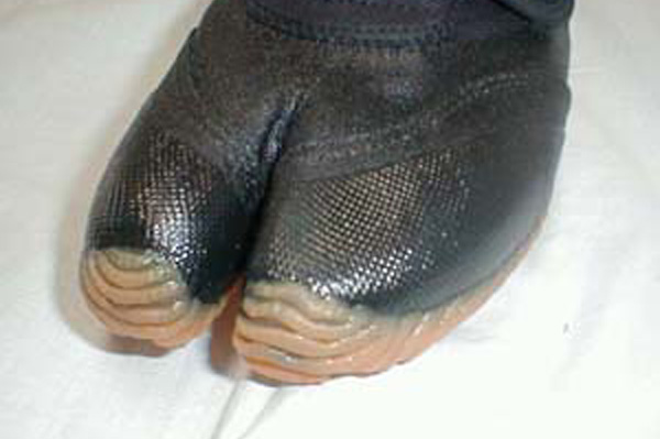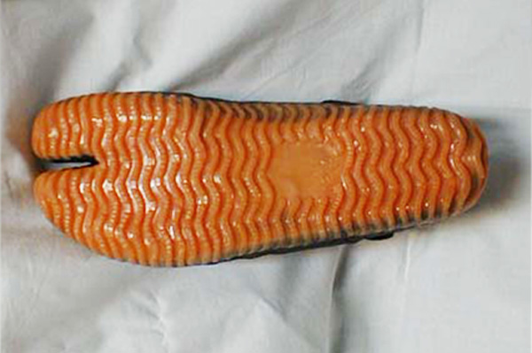 磨耗に強いゴムをつま先に装着地面から4cmまでの防水、防汚加工を施しました。